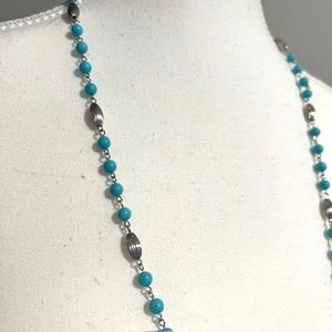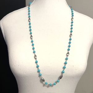 VTG Sarah Coventry Turquoise Blue Silver Fluted Wired Necklace