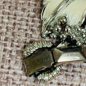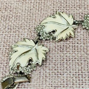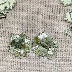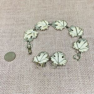 VTG Sarah Coventry White Enamel Silver Leaf Bracelet and Earrings Set
