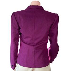 Tailored and structured with soft 80s shoulders and cropped length that hits just right. Made from a luxe wool blend in rich magenta. Timeless and chic with a bold Paris-New York label you just don't see anymore. Gorgeous worn with high-waisted trousers, denim, or a silk cami.