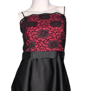 VTG Satin Lace Evening Gown Small Square Neck Bow Whimsigoth Fairy Grunge Y2K