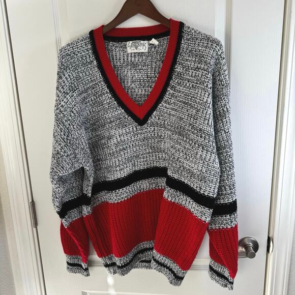 VTG Saturdays Retro 80’s 90’s V-Neck Knit Sweater Red Black White Men’s Large