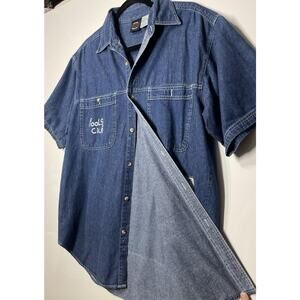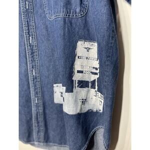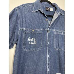 VTG Saugatuck Y2K Denim Shirt Button Down Collared Graphic Print Casual Men Med