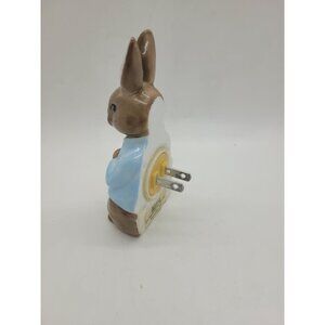 VTG Schmid 1989 Peter Rabbit Ceramic Nightlight 5" Tall Brown Blue cottage core