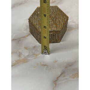 VTG Schmid Bros Japan Octagon Metal Trinket Box Red Velvet Lined Gold Tone