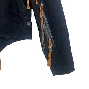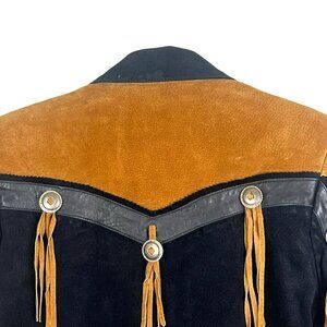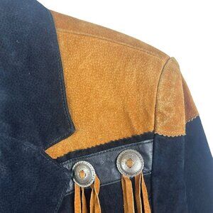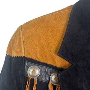 VTG Scully Jacket Womens Sz 10 Black Brown Fringe Suede Leather Jacket Western