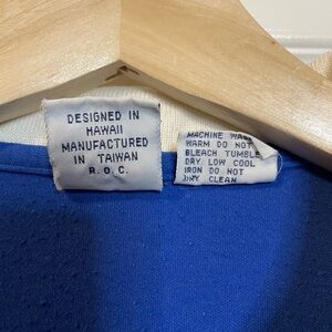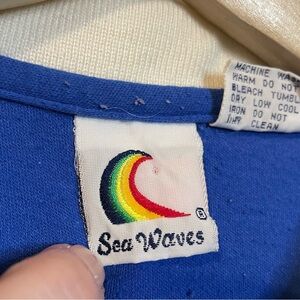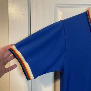 VTG Sea Waves blue ‘Hawaii’ polo shirt w/ rainbow collar & sleeve detail sz L