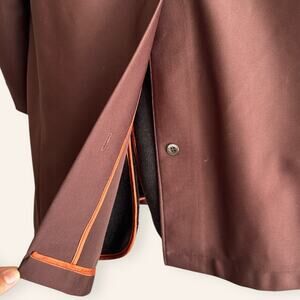 VTG Sears Travelknit trench coat in a rich brown tone featuring a soft faux fur collar and luxurious lining. Union made and tagged a size 42 Long, this coat fits like a men’s large long — perfect for layering over chunky knits or adding vintage flair to a city look or woodsman vibe. It’s part Midwestern farmer, part Hollywood detective.