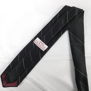 VTG Sears Classic Black Striped Polyester Silk Short Tie 55.75" x 3.25" USA