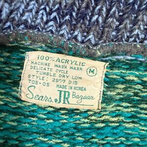 VTG Sears JR Bazaar Knit Cardigan Sweater M Colorful Hearts Striped School Twee
