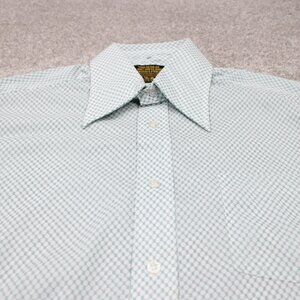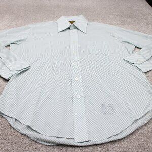 VTG Sears Perma-Prest Dress Shirt Mens 16 1/2, 35 Green/White Trim Regular Knit