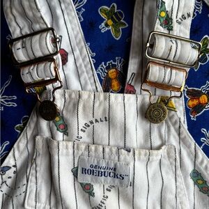 VTG Sears Roebuck Boys Baby Toddler White Cars Signs AOP Overalls & Hat MEDIUM