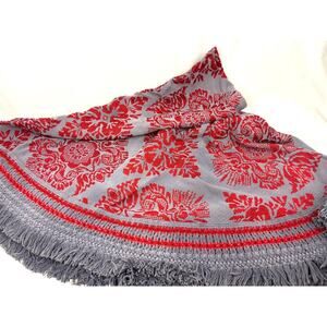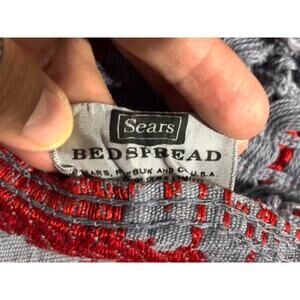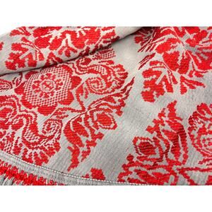 VTG Sears Tapestry Fringe Heavyweight Bedspread USA Made Red Gray 75"x71"