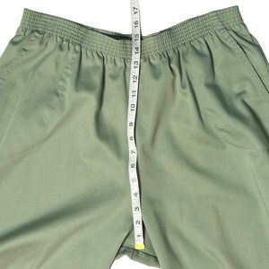 VTG Season Ticket Womens 22W Green Flat Front Elastic Waist Pants Front Pockets