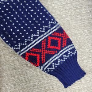 VTG Sedgwick Fair Isle Ski Sweater Blue Red White Acrylic L Winter Holiday