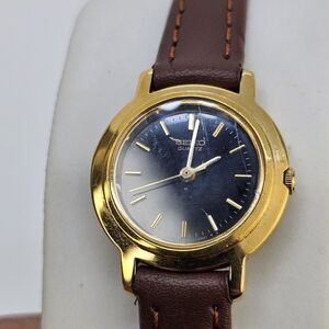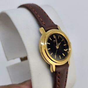 VTG Seiko Watch Women 22MM Black Dial New Brown Leather Bands Up to 6.5" Battery