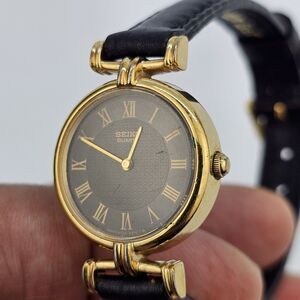 Used. Working. New Leather Bands. New Battery. Crystal, Case, and Back have scratches and discoloration. Wrist Size, Up to 6 Inches. Please Refer to Pictures.