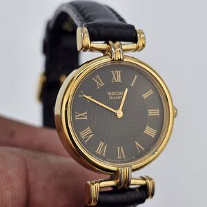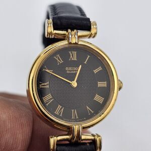 VTG Seiko Women Watch 22MM Black Dial Roman Numerals Black Bands 6" New Battery