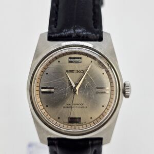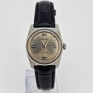 VTG Seiko Women Watch Mechanical 28MM Gold Dial New Black Leather Bands WORKING