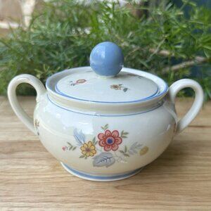 Add a touch of vintage charm to your dining table with this beautiful Seltmann Weiden Bavaria Sugar Bowl. The porcelain bowl features a lovely flower motif in multicolor and has a diameter of 4 inches. It is perfect for all occasions and will make a great addition to your dinnerware collection. This 4" signed with maker's mark Seltmann Weiden lidded sugar bowl has light blue, pink, yellow, green and white colors with blooming flower designs with a pair of loop handles and a knob top on the porcelain lid. Very well crafted and high quality Bavarian German craftsmanship MCM mid century modern vintage. This collector quality lidded flower sugar bowl from Central Europe is in good to excellent pre owned clean condition, no breakage issues, bright colors, well maintained. Please review the pictures for more details and size measurement information, thank you.
