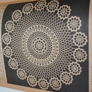 Crochet: afghan, blazer set, doily, place mat, Greek key edge, glass jacket