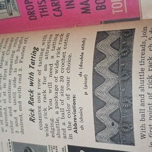 Tat: bias binding with tatting, Rick rack with tatting, tatted edge