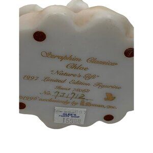 The VTG Seraphim Classics Roman Inc Angel Large Figurine, Chloe Natures Gift 1997 Limited Edition #78068, is a pastel-colored, 12" x 6" decor piece.