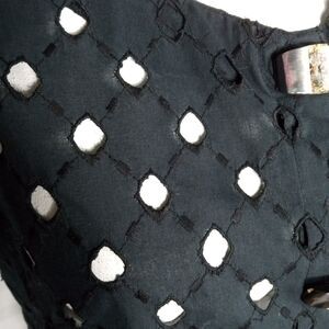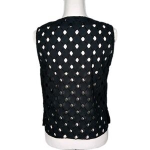 VTG Serenade Eyelet Cutout Resin Goldleaf Buttons Sleeveless Tank Vest Art Sz S