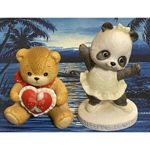 Pre-own nice condition. This listing includes two adorable Vintage Enesco Lucy and Me figurine featuring a bear holding a heart and a sleeping beauty panda bear. These figurines are perfect for any collector or fan of cute and cuddly creatures. The set is beautifully crafted with intricate details. Made in Malaysia.