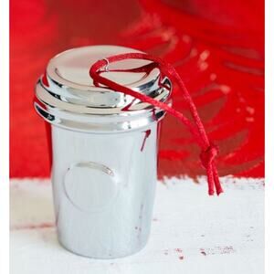 Details: Beautiful Gold, Silver And Red Metalic Ceramic Starbucks Paper Cup Ornaments. RARE