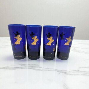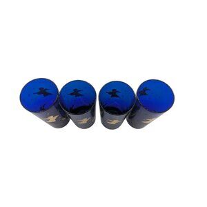 VTG Set 4 Cobalt Blue Cherub Culver Drinking Glass Tom Collins Barware 22K Gold