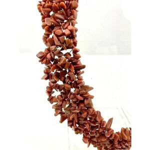 VTG Set Brown Goldstone Speckle Chips Cluster Necklace with Bracelet 925 WJ 18"
