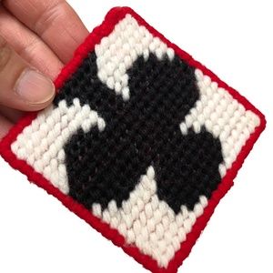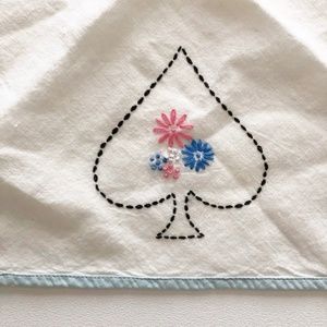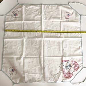 VTG Set Card Table Cover w Ties Hand Embroidered, Handmade Coasters Poker Bridge