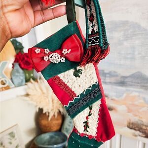 VTG Set Of 3 Patchwork Fabric Wreath, Antique Xmas Mini Stocking & Hallmark 2004