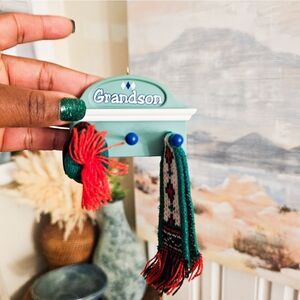 New 2004 Hallmark Keepsake Grandson, Holiday Hat| Scarf Rack, Christmas Tree Ornament.