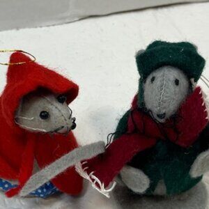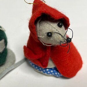 VTG Set of 2 Handmade Felt Christmas Holiday Mice Hanging Table 3.5"-4" High