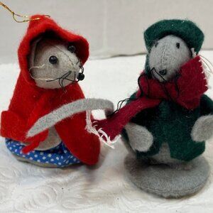 Adorable Set of 2 Vintage Handmade Felt Christmas Holiday Mice