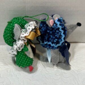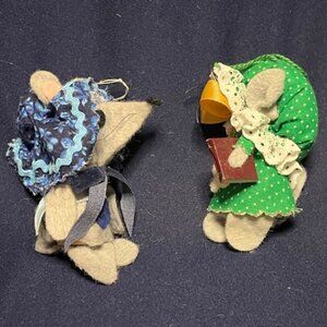 Adorable Set of 2 Vintage Handmade Felt Holiday Mice