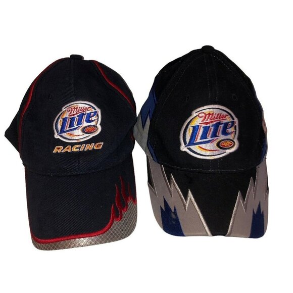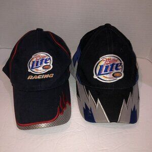 Vintage Set of 2 Rusty Wallace #2 Miller Lite Racing Adjustable Hats Caps NASCAR Blue