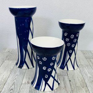 VTG Set of 3 Pacific Rim Candle Holders Blue White Ceramic Taper Candlestick