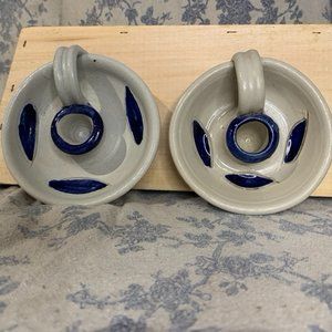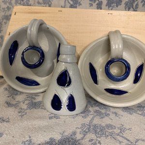 VTG Set of 3 Williamsburg Pottery Candle Holders & Bud Vase Repro Salt Glaze
