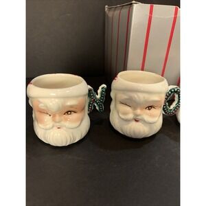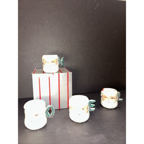 VTG Set of 4 Commodore Japan Noel Santa Faces Ceramic Mugs Hand Painted 1950's