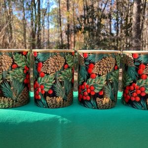 VTG Set of 4 Fitz & Floyd Bone China Holiday Pine Mugs