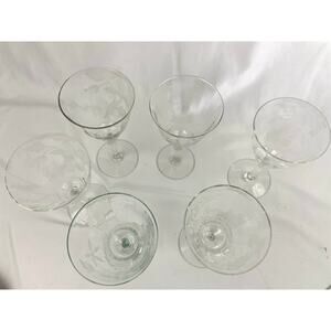 VTG Set of 6 Frosted Floral Liqueur Glasses Stemware Barware