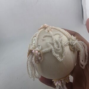 VTG Set of 9 Cream Embellished Bead Sequin Christmas Ornaments Holiday Decor