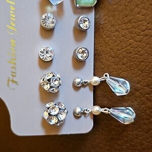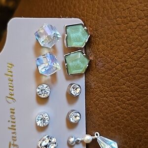 VTG Set of Six Rhinestone Irridescent Post Stud Earrings