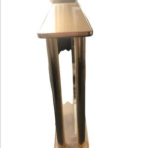 VTG Seth Thomas Desktop Small Quartz Clock Roman Numerals Gold Plexiglass 6X6 WORKS. New AA battery included.