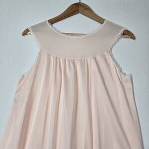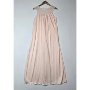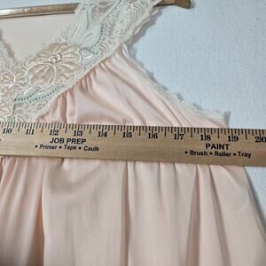 VTG Shadowline Satin Long Nightgown S Peach Sleeveless VNeck Lace Embr Flowers
