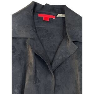 VTG Shamask Black Linen Floral Damask Pant Suit Bergdorf Goodman Sz 2 L/XL