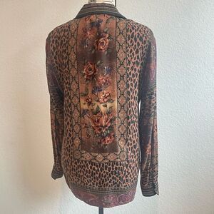 VTG Sharon Young Sports Wear 2 Brown Top floral animal Print Boho Grandmacore