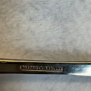 This charming vintage MCM 50s cranberry serving set/ Cranberry Jelly Log dish includes a beautifully detailed silver-plated spoon with cranberry design and a clear glass crystal serving tray with a textured pattern in its original box. The spoon is marked 'Sheffield England' and 'Silver Plated', indicating its quality. Perfect for Thanksgiving Tablescape Serving Dishes or any holidays and parties.